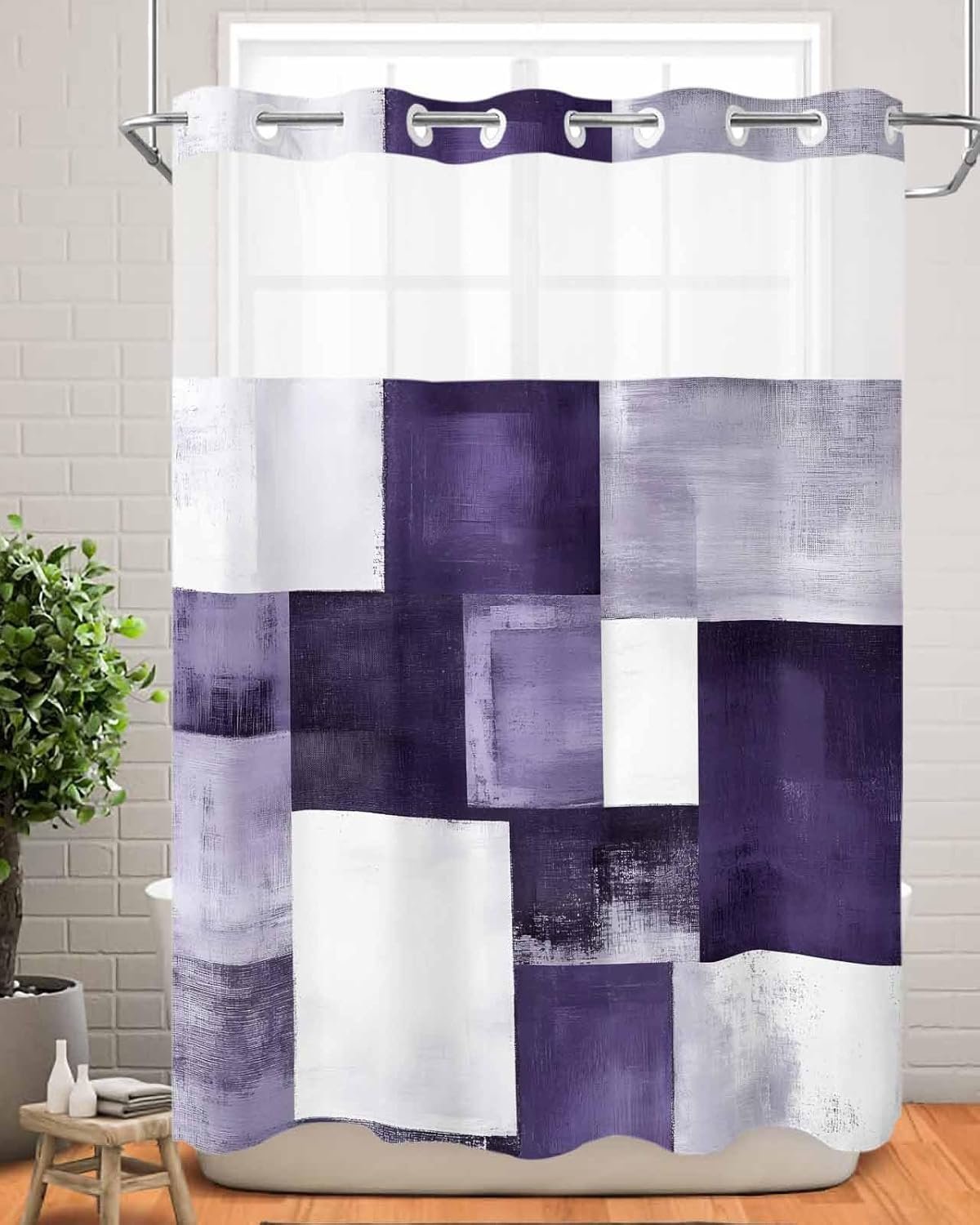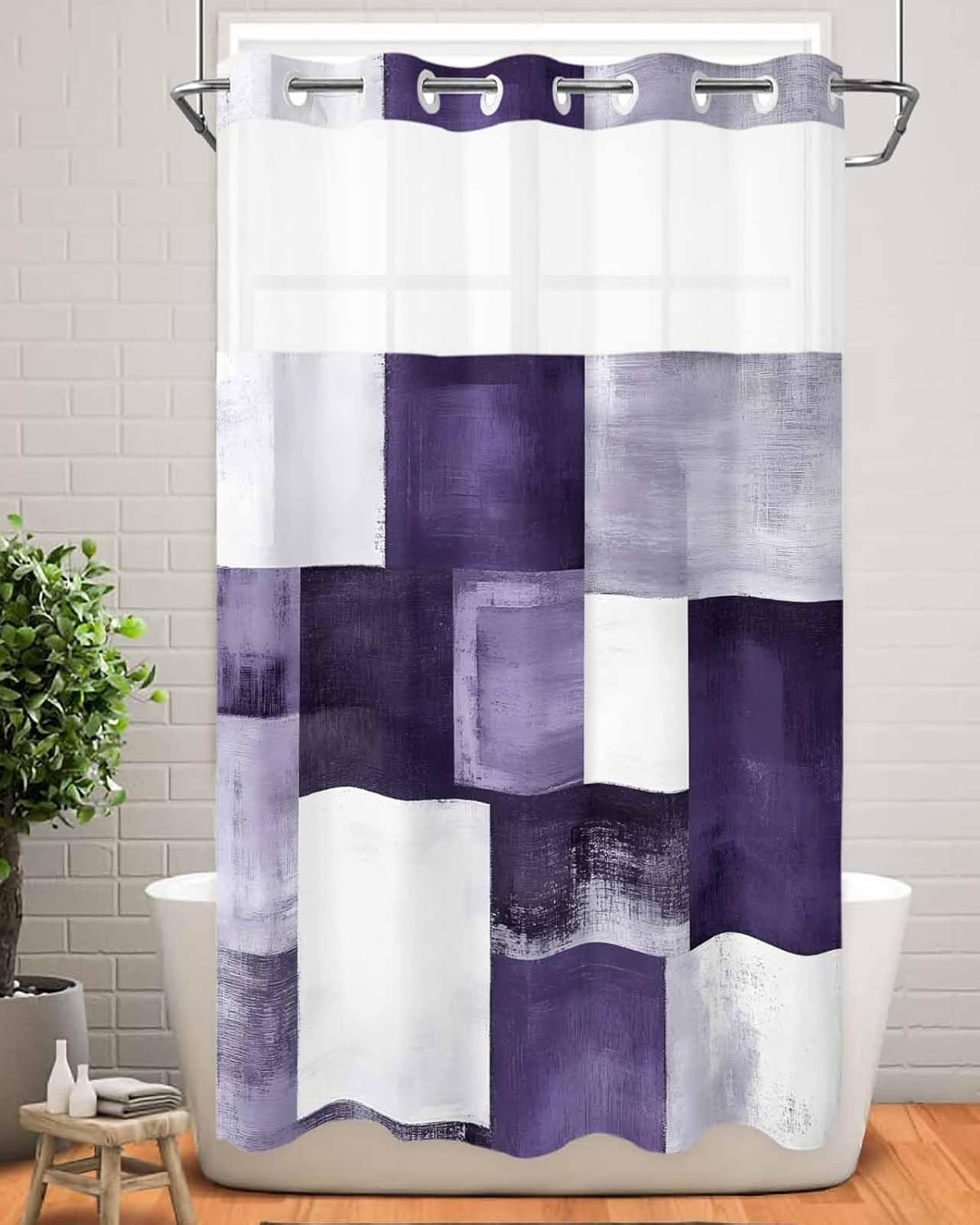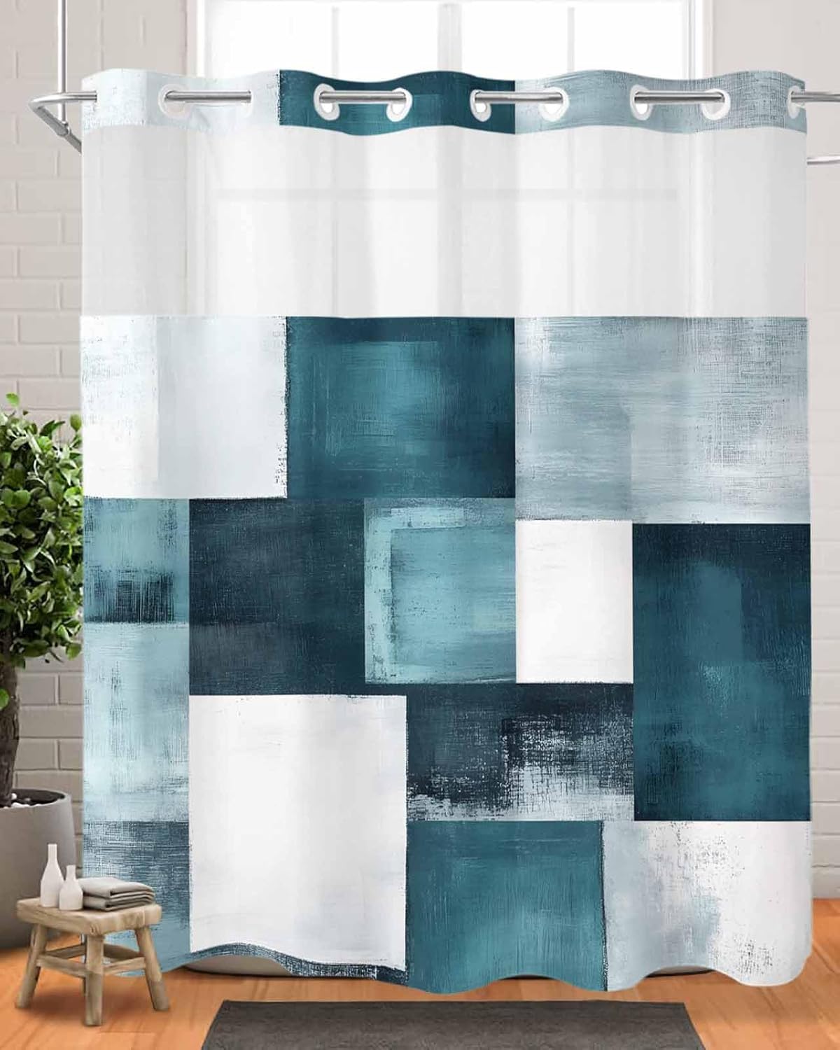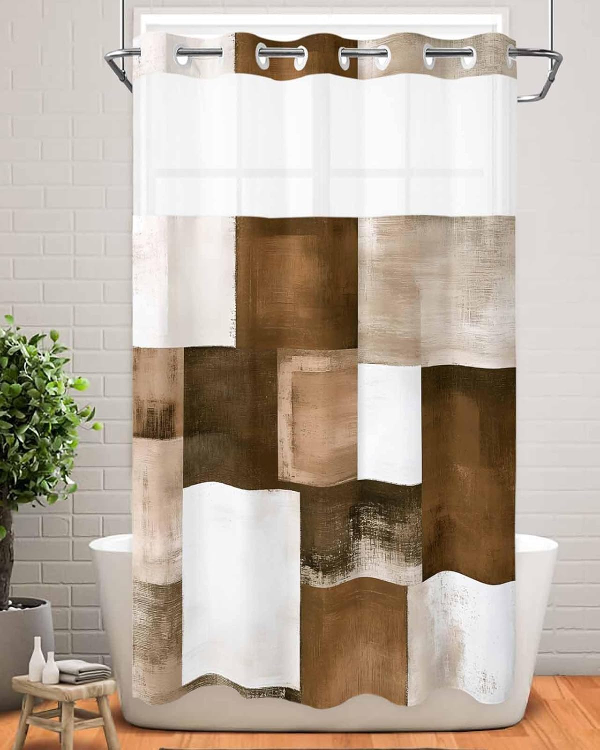 Material: 100% Waterproof Polyester Fabric Design: no hook with Snap-in Liner Care Instructions: Both the Outer Curtain and the Inner Liner are Machine Washable Dimensions: 36 x 72 inches 36 x 78 inches 48 x 72 inches 54 x 78 inches 60 x 72 inches 66 x 72 inches 72 x 72 inches 72 x 78 inches 72 x 84 inches 72 x 96 inches Features: no hook Design: Seamlessly combines style and functionality with a no hook shower curtain. Say goodbye to the trouble of hooks; our design makes installation and removal a breeze. Snap-in Liner: Includes a fabric waterproof inner liner with snap in functionalities, ensuring easy maintenance and replacement. Hotel Style Elegance: Enjoy luxury hotel comfort at home with our premium quality no hook hotel shower curtain, complete with a mesh top window for that upscale, airy feel. Waterproof & Durable: The snap in liner shower curtain is waterproof, durable, and washable, ensuring long time use. Enhanced Light & Air Circulation: The mesh top window allows natural light to filter through and offers improved air circulation while maintaining privacy. Usage Scenarios: Home Bathrooms: Elevate your daily shower experience with our elegant, no hook shower curtain set, perfect for any standard bathroom. Hotels & Spa: Impress your guests with a touch of luxury; our no hook shower curtain and liner set offers both style and ease of use, ideal for busy hospitality environments. Walk In Showers: Designed to fit standard walk in showers, the fabric liner and mesh window combination adds functionality and comfort to daily life.