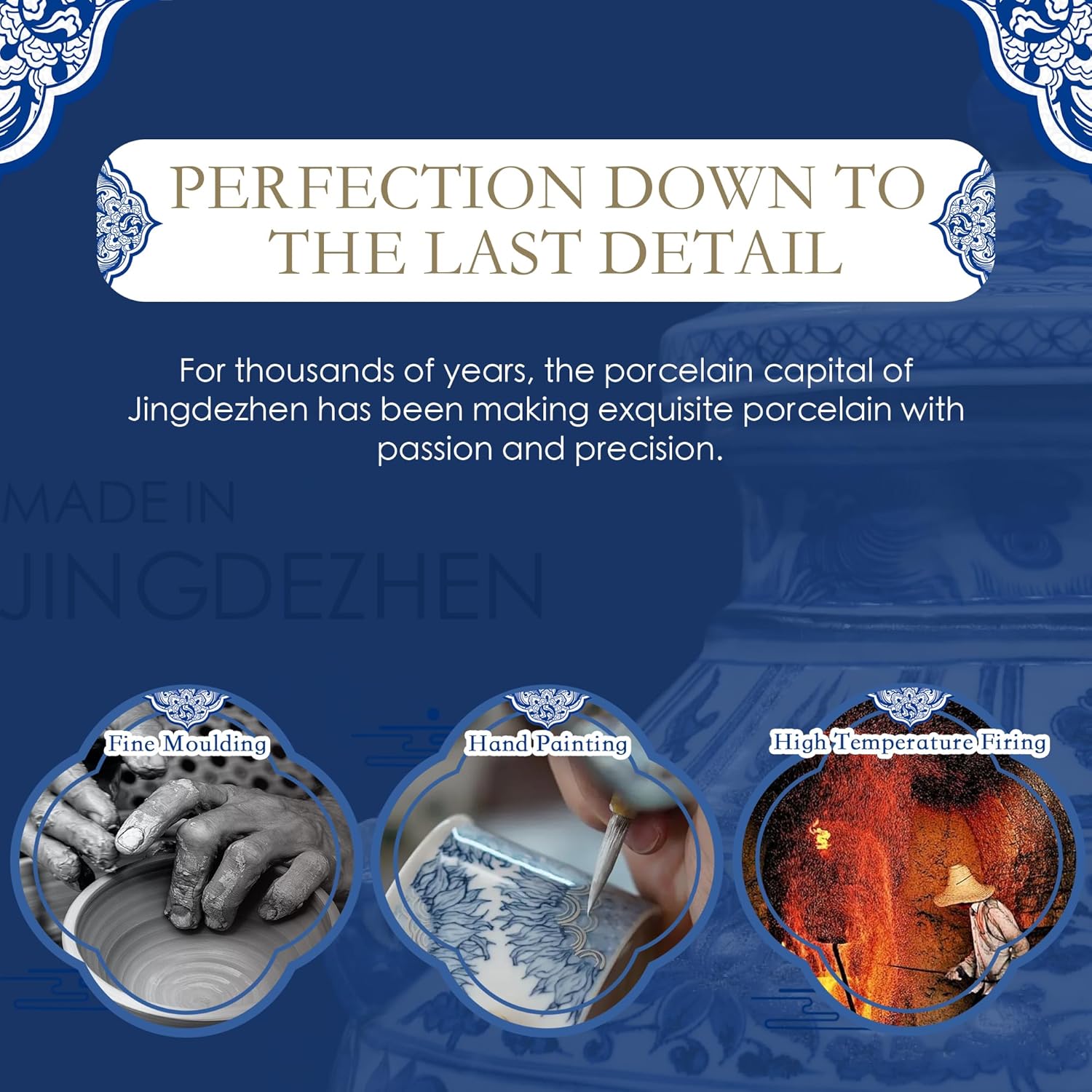 Utensil Holder, 6" Premium Ceramic Kitchen Utensil Rack for Countertop, Hand-painted blue and white porcelain made in Jingdezhen suitable for Kitchen Counter Decor, Vintage Farmhouse Kitchen Decor for Counter